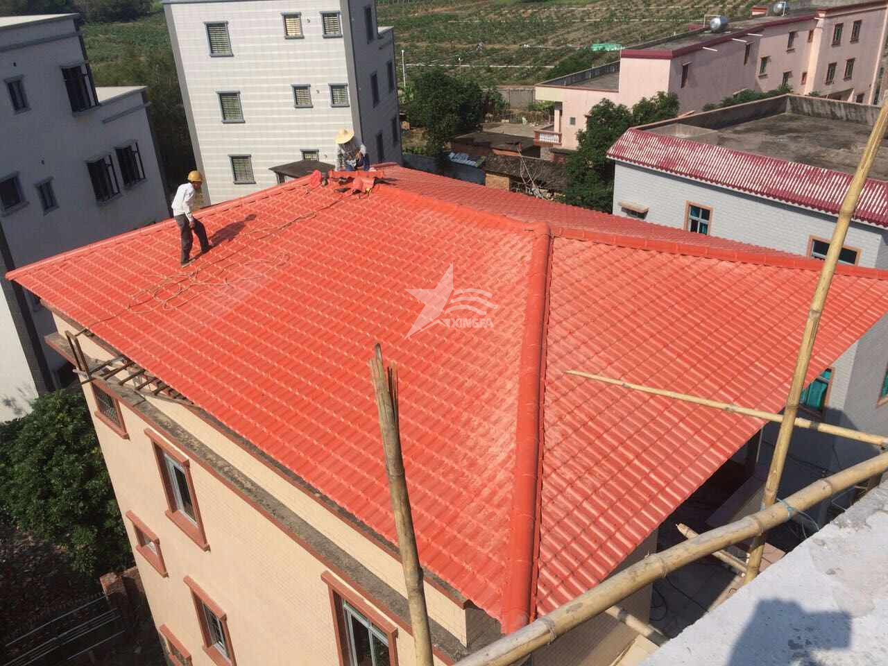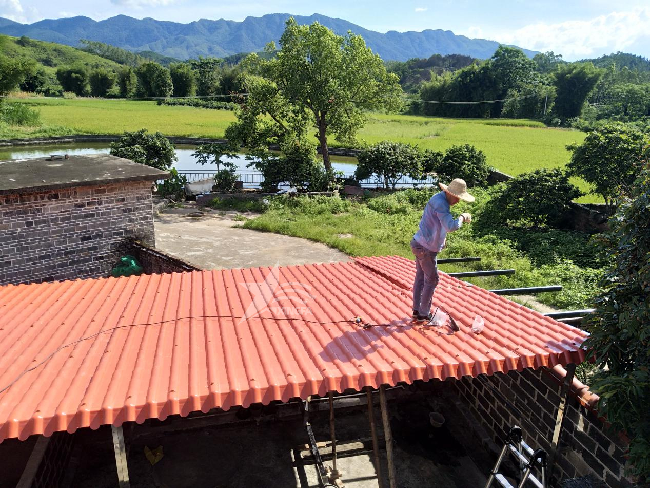 在完成防水層的鋪設(shè)后,再覆蓋保溫層和樹脂瓦,從而完成整個(gè)屋面的防水、保溫和瓦板覆蓋工作。