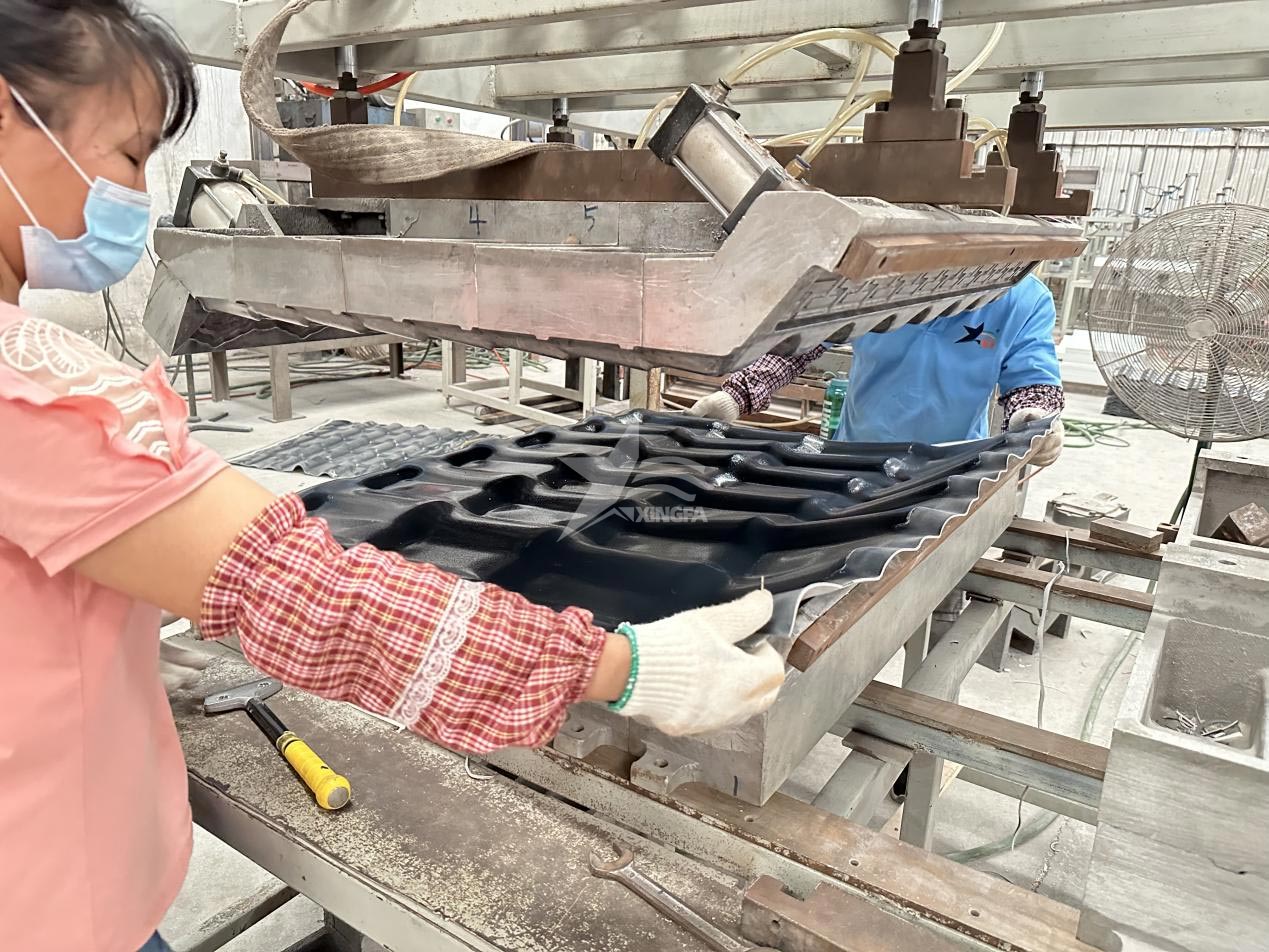 3. 模具制作: 樹(shù)脂瓦的形狀和紋理通過(guò)模具實(shí)現(xiàn)。制作模具需要根據(jù)設(shè)計(jì)圖紙制造出精確的模型。模具可以是單一的大型模塊,也可以是模塊化的,以便在制造過(guò)程中能夠生產(chǎn)多種不同形狀和尺寸的瓦片。